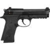The Beretta 92X GR Full Size blends the proven reliability of the 92 Series and M9 family of firearms with the state-of-the-art features that you’re looking for in a modern defensive pistol. This is the ultimate evolution of one of the most widely utilized defensive pistols ever produced. It has all the standard features of the traditional M9 combine with the vertical configuration and ergonomics of Vertec styling. With the built in ergonomics of a straight backs strap, optimized grip angle and thinner profile, the 92X accommodates the widest range of hand sizes from large to small. Vertec styled vertical synthetic grips are comfortable even in smaller hands and allow for a more natural instinctive point while giving you that positive no slip grip you need. It has an oversized magazine release, a beveled mag well and a type G ambidextrous decocker. The combat sights pair a high visibility front sight with a black rear sight to give you the ultimate easy to acquire sight picture. Featuring a picatinny rail in front of the trigger guard, it’s ready to equip your essential tactical light or laser accessory. Sporting a durable black Bruniton finish with checkered front and back straps, the thinner profile is easy to handle and easier to conceal for the legally armed citizen. You know that you can rely on Beretta to defend your life. You know that the Beretta 92/M9 is one of the best pistols available. The future of modern self defense pistols is here. Make sure you have the Beretta 92X GR Full Size at your side!