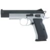 The EAA Witness Elite Stock II is a semi auto pistol that is comparable to a high performance sports car. The Elite Stock II is specifically designed for the competitive shooter looking for an edge. Built on a competition frame this elite model includes a double/single action trigger with over travel stop. Additionally a fully adjustable super sight, extended ambidextrous safety, extended beavertail and extended magazine release round out the list of features. This pistol features a barrel which utilizes Polygonal Rifling for superior accuracy. The checkered Walnut Grip and Heart shaped hammer add a certain touch and flare not found on other pistols.