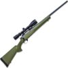 A 7mm Rem Mag Scoped Hunting Rifle Package with a Green Hogue Stock and Threaded Barrel